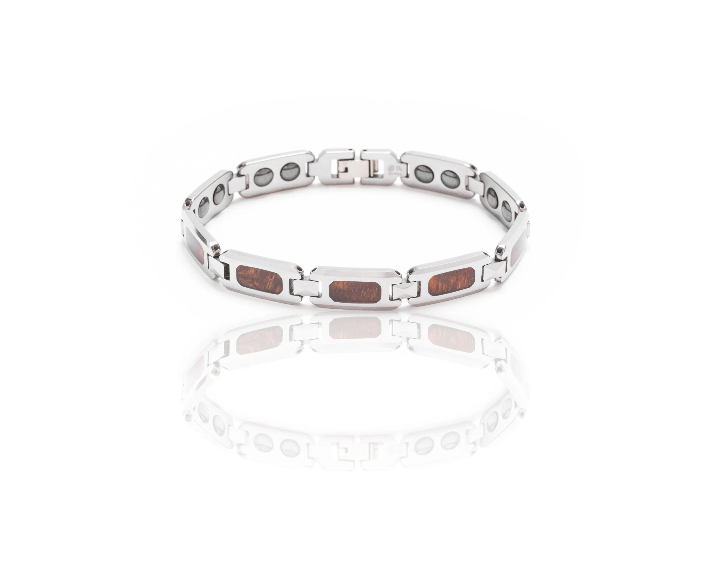 Tungsten Link Bracelet with Koa Wood and Abalone Shell inlay